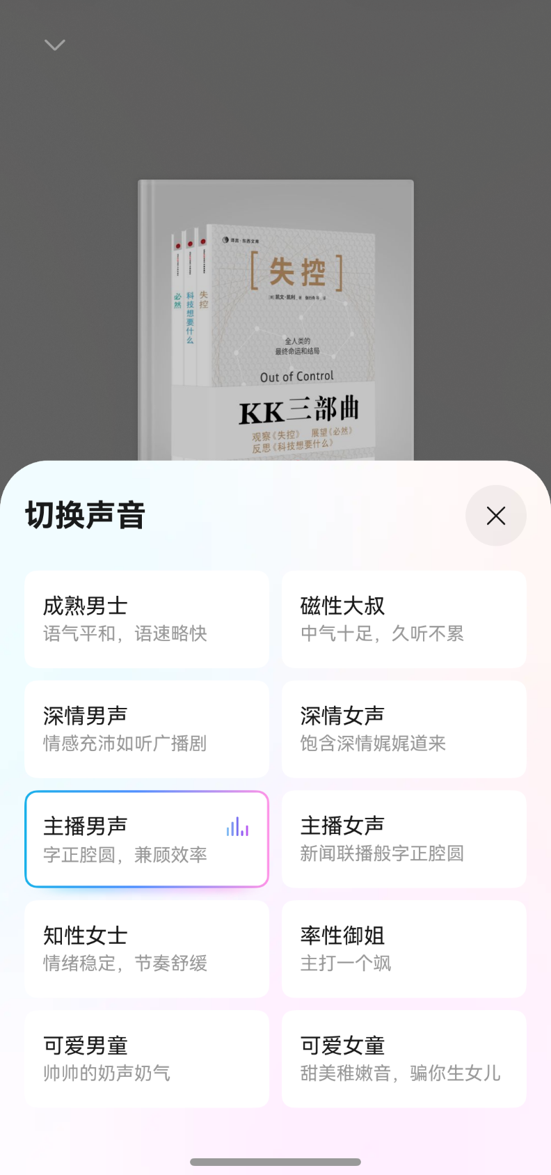 有时候看累了,我就切换到听书模式。华为阅读的“精品音色”真的值得夸一下,没有机械感,仿佛真人在播讲内容。我为这几书选择的是“主播男声”音色,低沉的声音有呼吸感,有停顿,符合整本书的科技氛围。