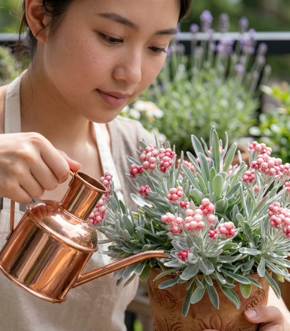 银叶蜡菊耐旱,怕涝。叶子毛茸茸的,其实就是在减少水分蒸发。等土干透了再浇,浇就浇透。地栽的基本不用管,靠天吃饭就行。盆栽的浇水前,掂一下盆,盆轻飘飘了再浇水。