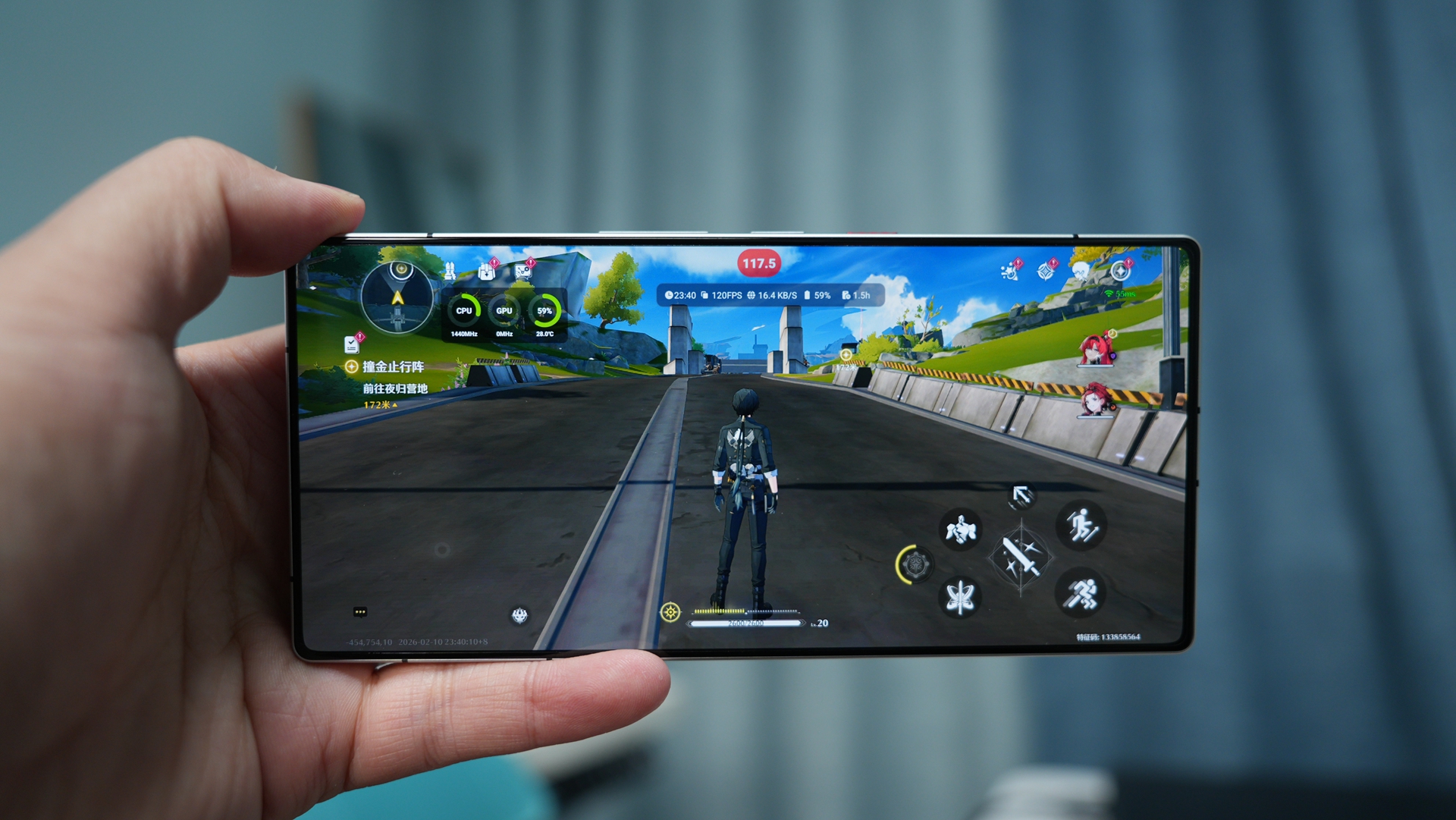游戏30分钟后,可以看到画面依旧保持60帧(默认60帧)满帧运行,人物跳跃加速丝滑,没有明显拖影,机身微微发热。
