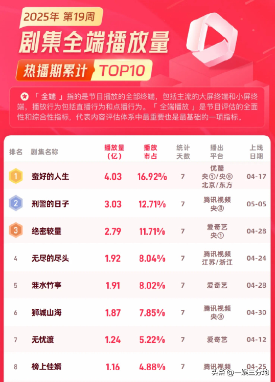 但即便如此,《蛮好的人生》的数据也代表了实打实的热度。