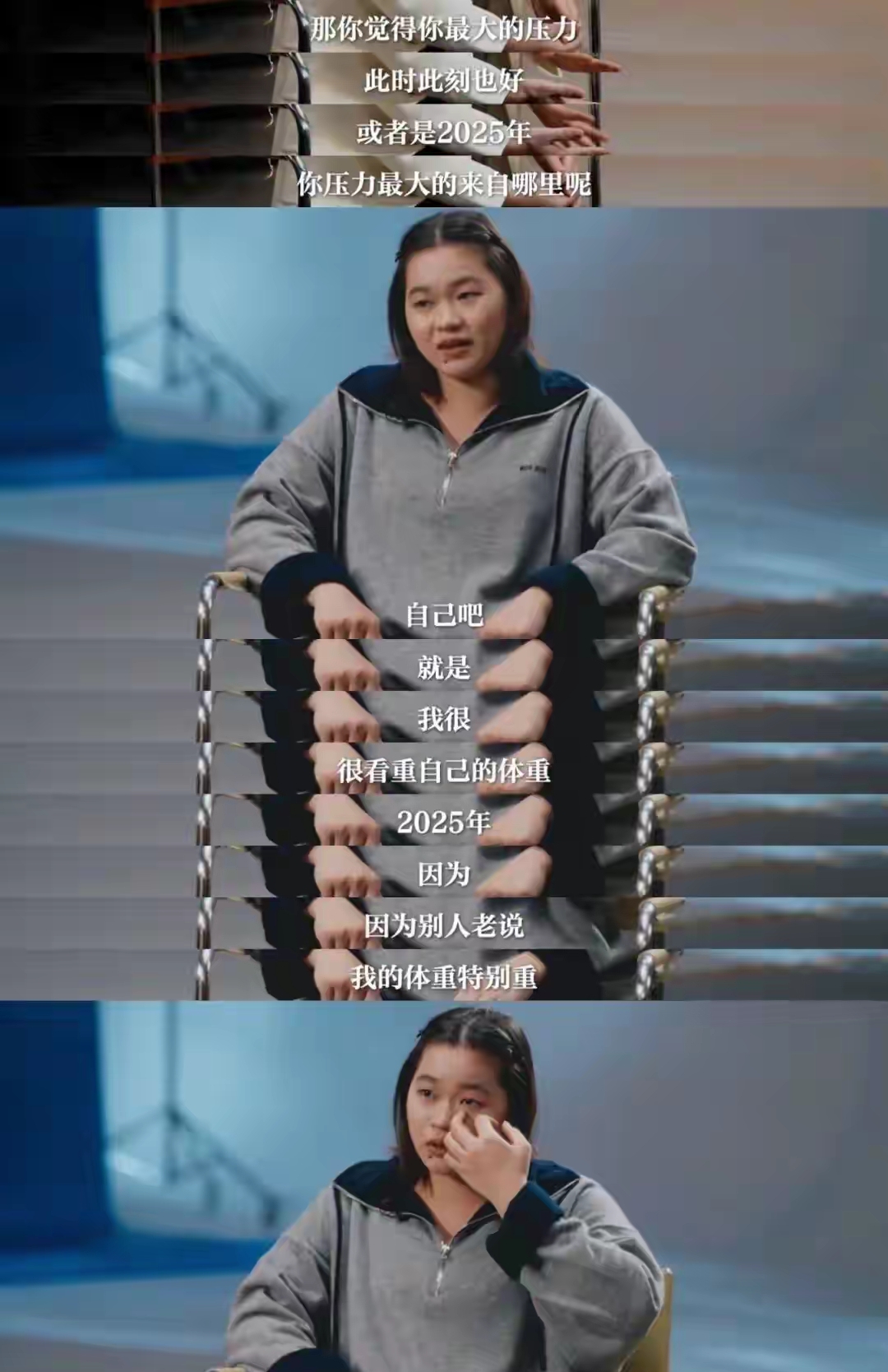 全红婵在《人物》杂志专访里说着说着就哭了。她说:“2025年我很看重自己的体重,因为别人老说我体重特别重,然后我就特别伤心。自己也不敢穿那种短裤、裙子之类,只敢穿长裤长袖。”