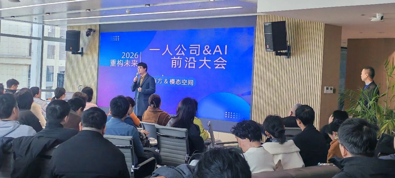 2026年1月10日,武汉光谷。冬日的寒意并未驱散一群人的热情。泛悦城T2写字楼11楼的“模态空间”里,人流逐渐汇聚,空气中弥漫着一种特殊的能量。作为本次“2026·重构未来,一人公司&AI前沿大会”的参与者之一,我站在会场一角,看着来自四面八方、不同背景的参与者们交流,我清晰地感受到,我们即将共同经历的,不仅仅是一场四个半小时的活动,更是一次对未来工作与创业形态的集体眺望与热烈探讨。