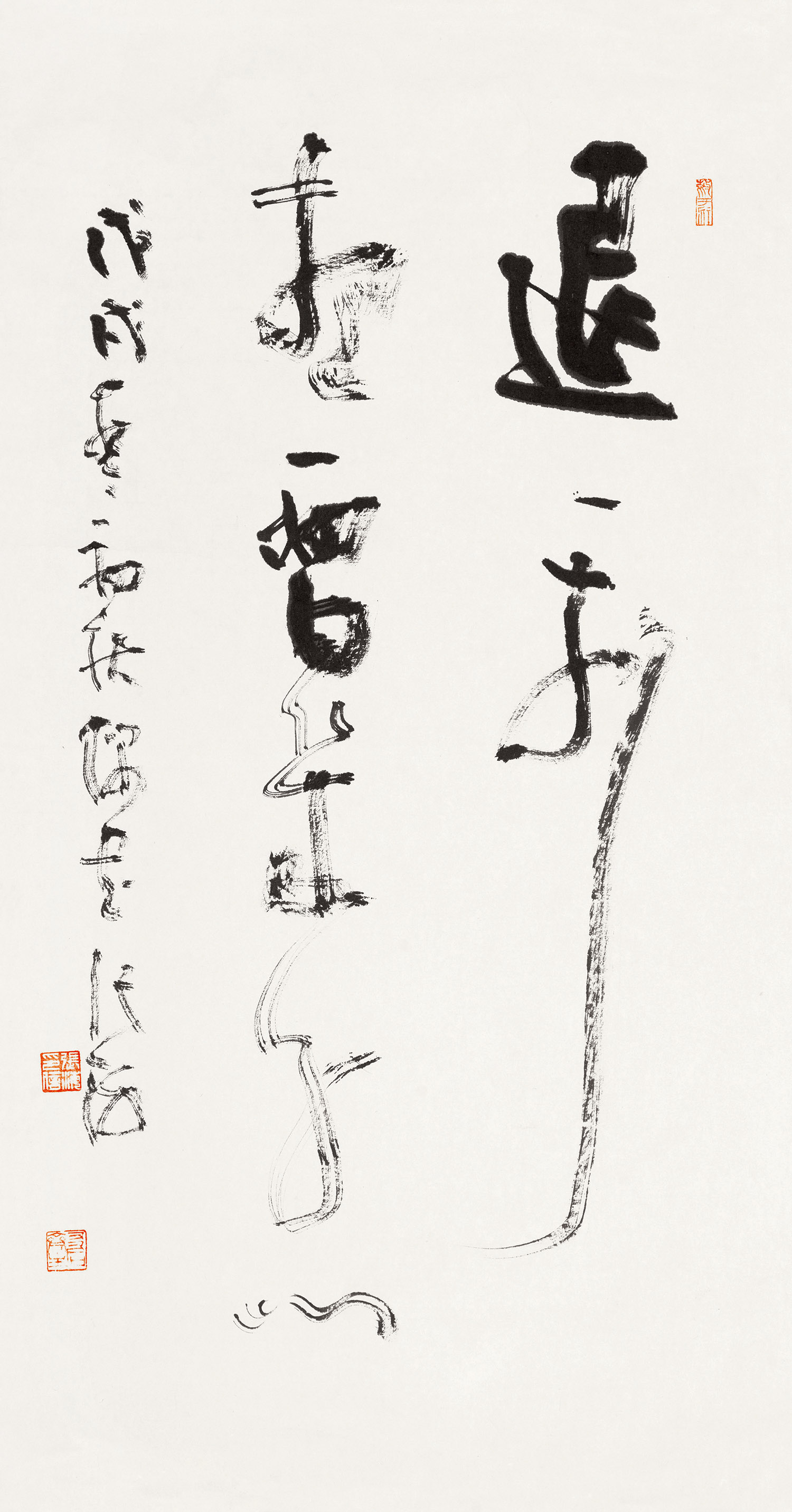 书法之道,如行山阴道上,移步换景,目不暇接。米芾“集古字”而自成一家,郑板桥“六分半书”独辟蹊径,皆因不墨守成规。张海的“探索一直在路上”,是一种不向时间低头的姿态。意味着对传统的再发现,对笔墨语言的再创造,也意味着在未知领域中坦然前行。正因如此,张海先生的作品总能呈现出新意与生命力。