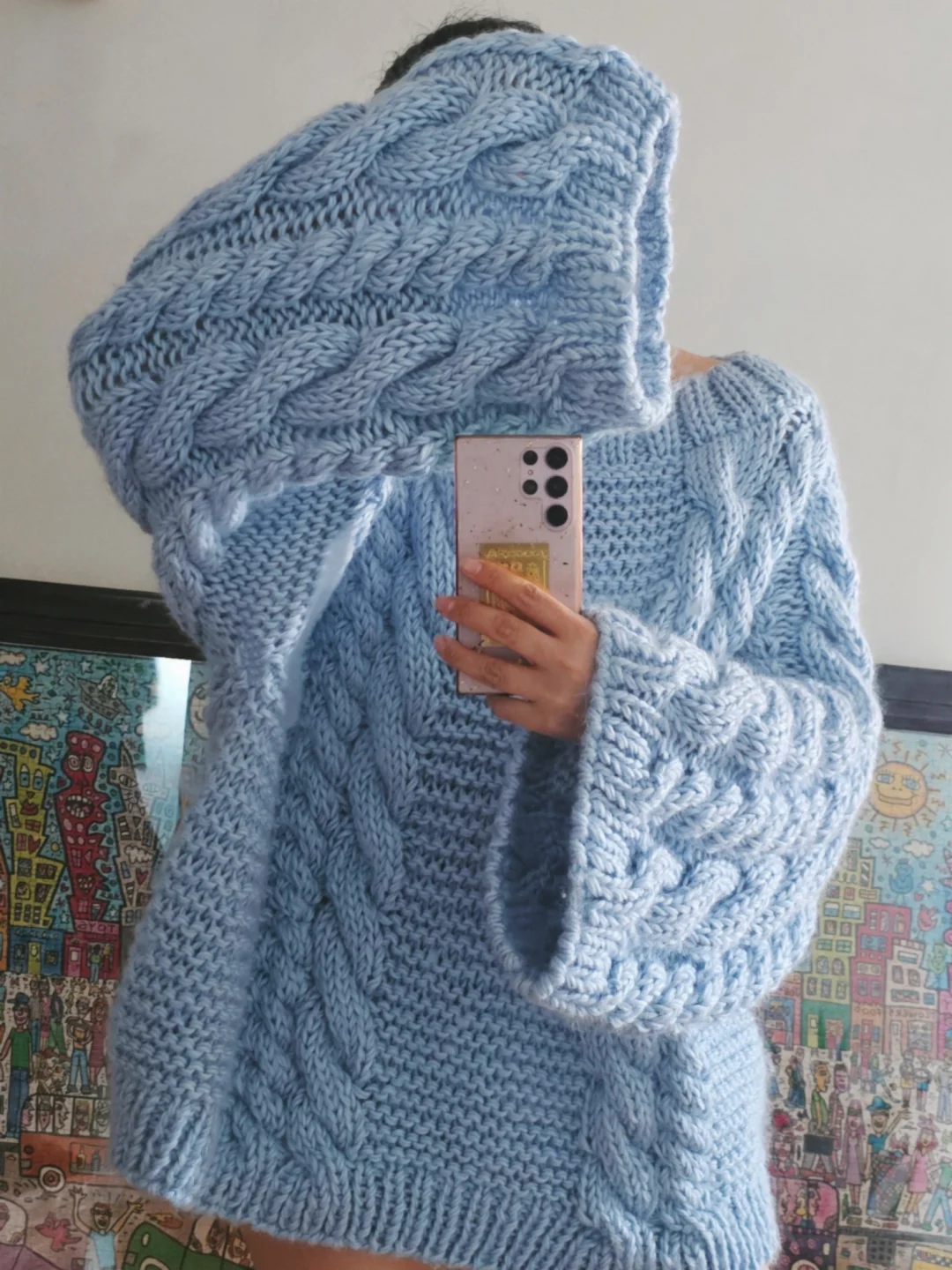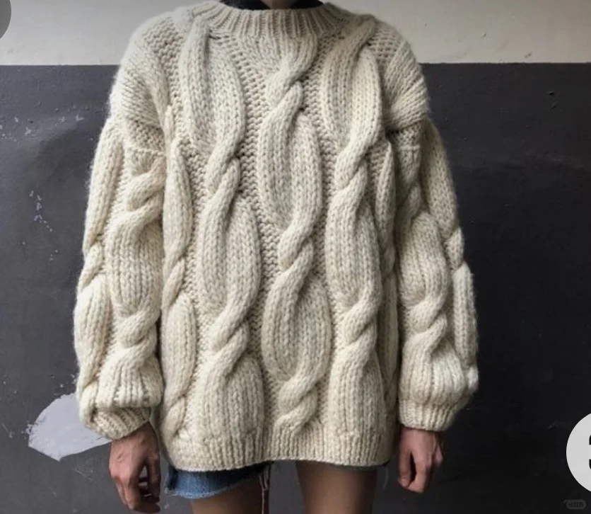 前些年比较流行这种厚重的粗线毛衣,但其实这种毛衣的上身率也很低,建议大家还是尽量不要选择了。