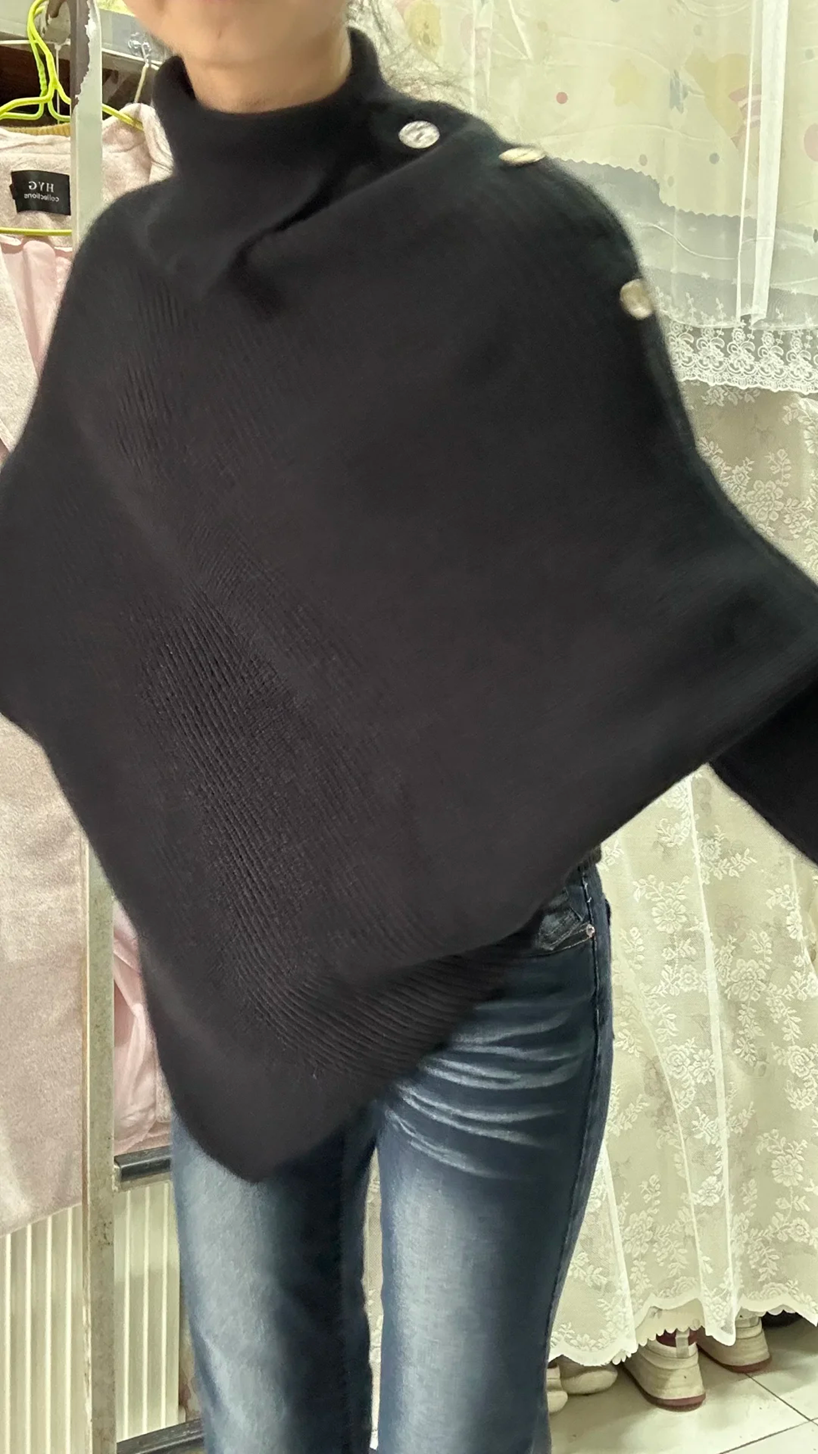 最重要的是这种蝙蝠袖的毛衣并不适合作为内搭,如果直接外穿的话特别冷,