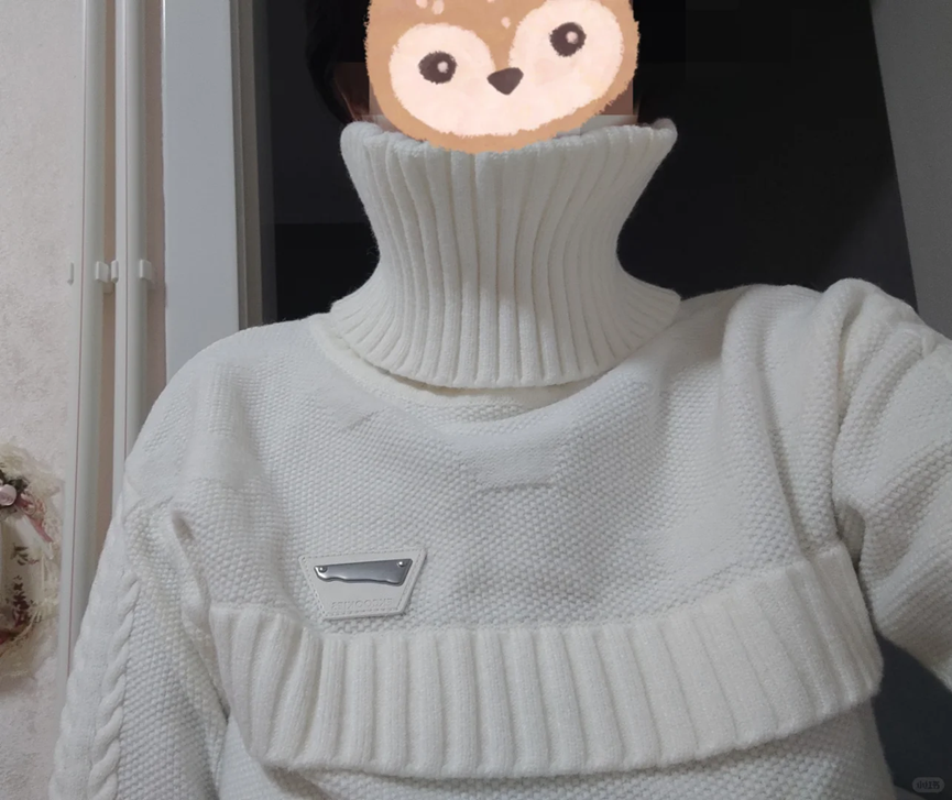 但建议大家在选择毛衣的时候,尽量不要选择领子过过高或者是过紧的款式。