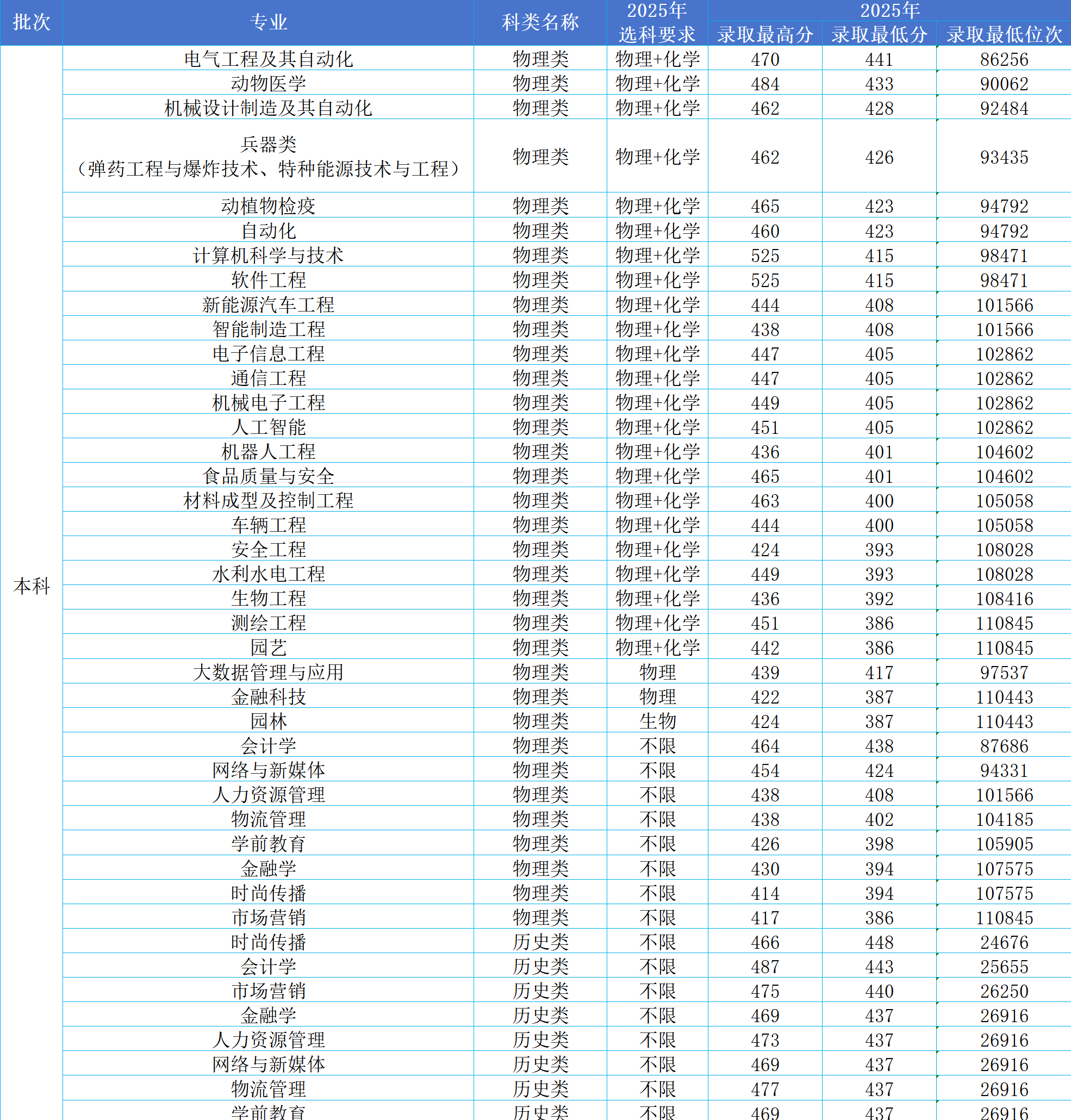 2025年,沈阳工学院在辽宁省的录取数据,直观呈现出这里特色工科院校对考生的吸引力。该校本科物理类录取位次区间为86256—110845,对应分数段386分至525分,最高分超出本科控制分数线整整158分;历史类位次区间则为24676—26916,对应分数段437分至487分,最高分也超过本科控制分数线50分,可见这所院校对考生极具吸引力,尤其是物理类考生。