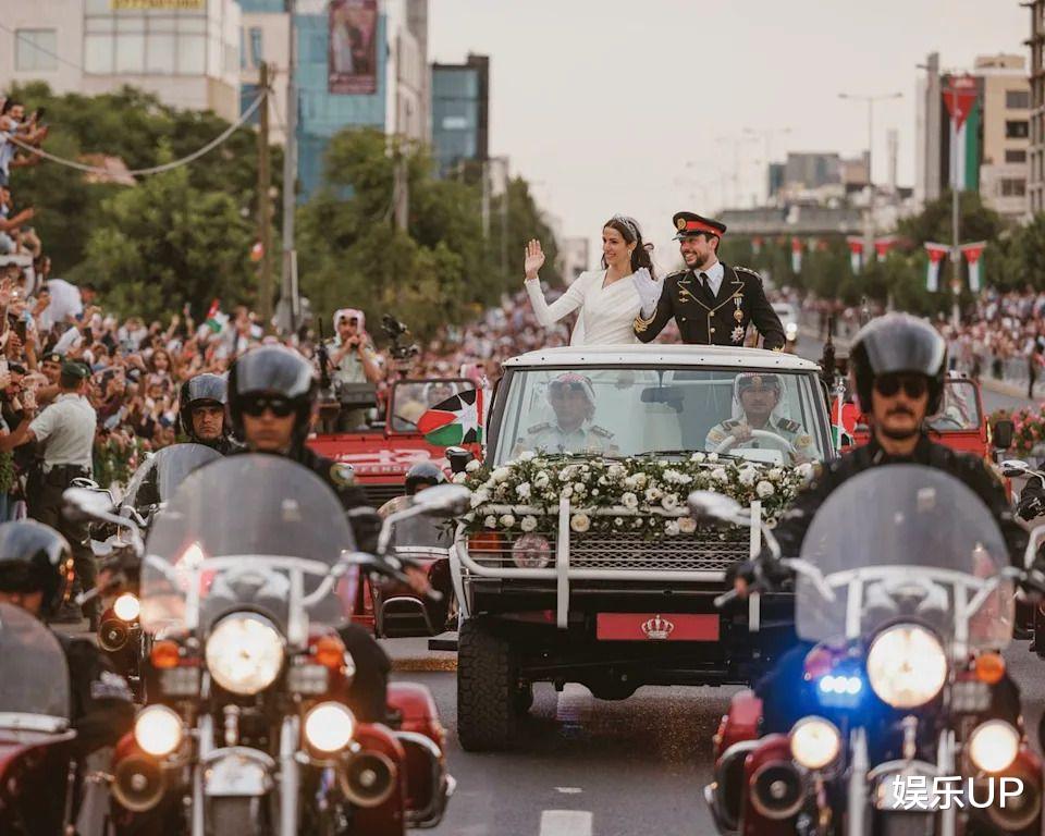 红毯环节也暗藏反叛。多数西方婚礼由父亲挽着新娘出场,但瑞典传统是新人并肩同行。2010年,瑞典维多利亚公主与丹尼尔·韦斯特林的婚礼却引发轩然大波——公主坚持要由父亲国王引领走向圣坛。最终妥协方案是:国王在红毯中途将女儿交给新郎。这场看似微小的争执,撕开了王室传统与个人意愿的拉扯。约旦2023年的皇室婚礼则把古老传统“现代化”了。侯赛因王储与拉吉瓦婚后,没有选择马车,而是坐上一队鲜红色的路虎越野车进行巡游。这一红色车队承袭自1946年哈希姆王朝的马队传统,只是骑手换成了钢铁座驾,传统以炫目方式存活下来。最颠覆认知的或许是“戴王冠,不戴头饰”。在不丹,国王吉格梅在2011年婚礼上从金色宝座走下,亲自为新娘佩玛戴上华丽的“凤凰王冠”。这顶丝绸锦缎制成、饰有凤凰与佛教图腾的王冠,与国王的“乌鸦王冠”一同宣告:在这里,神圣性远比西洋的闪亮头饰更重要。
