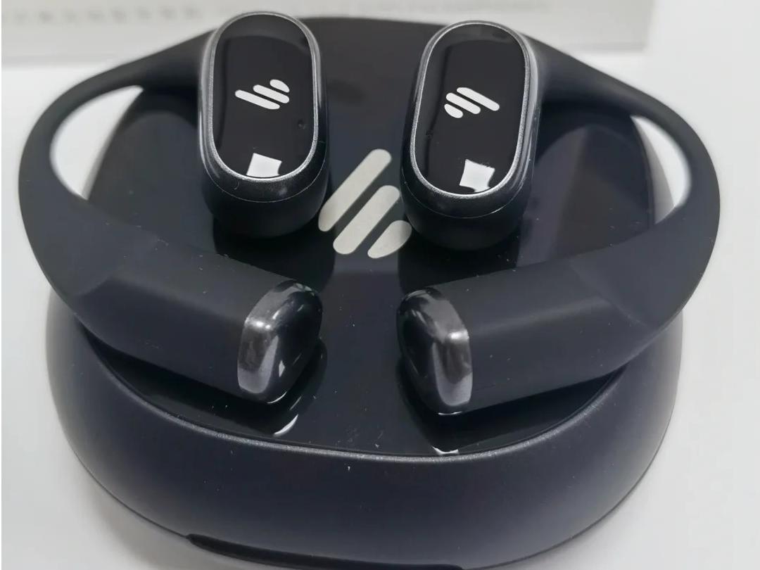 戴眼镜的朋友选它准对,耳挂是天鹅颈设计,不会跟眼镜腿打架,戴久了也舒服;单耳才9.5 克,很轻,加上耳挂的黄金角度拐点设计,戴一下午耳朵也不酸不压。日常用也很省心,IPX4 级防水,出汗、下小雨都不怕耳机坏。