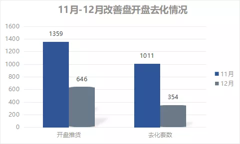 改善盘选取标准为房源超144㎡及均价超1万9/㎡项目相比新政推出前的上月,12月改善房源去化明显收紧,整体去化率降低至54%!