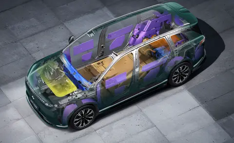 车身安全:eπ008采用高强度+吸能的笼式车身设计,热成型应用重量占比19.1%、高强钢占比70.8%,在各种碰撞场景中形成超高强度闭环结构,同时关键乘员舱区域加入1500MPa一体式激光焊接热成型门环和贯穿式侧气帘,针对性缓解二次伤害。