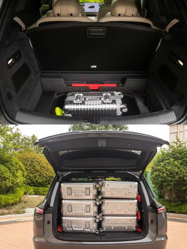 空间方面, 乐道L90真正实现了“座座皆VIP”。5145mm车长搭配3110mm超长轴距,采用2+2+2六座布局,每一排都不是“凑数座位”。第三排空间经工程优化,完全不鸡肋,成年乘客也能坐得舒展。在设计上,它预留了240L超大前备舱,配合6座满员状态下430L、放倒第三排后1214L的后备箱空间,能够轻松实现“六人十箱”的满载出行,无论是露营装备还是春运行李,都能从容安置。
