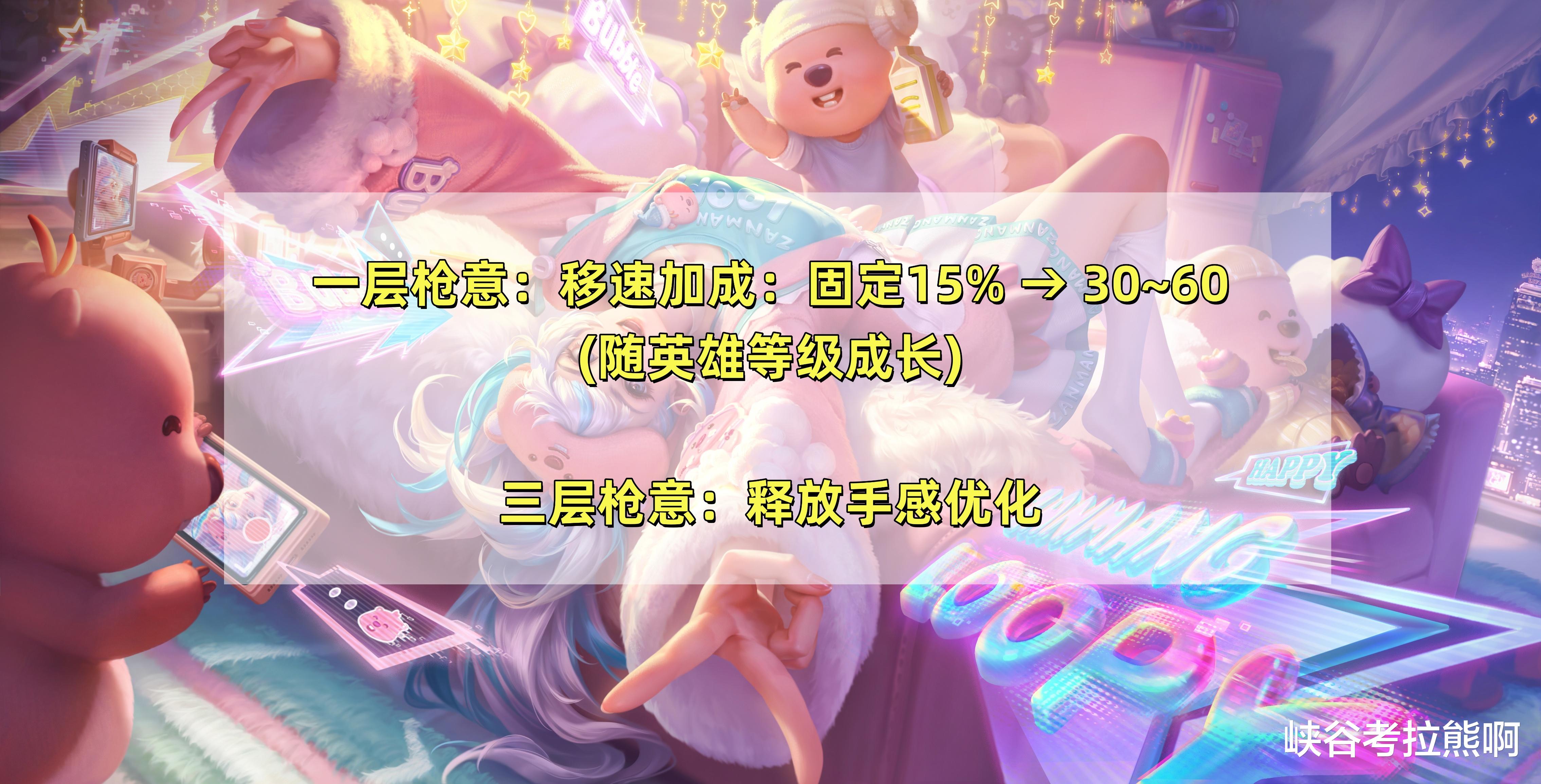 本次将云缨一层枪意的移速加成从固定15%,改为了30~60点,作为补偿优化了三层枪意时的释放手感。