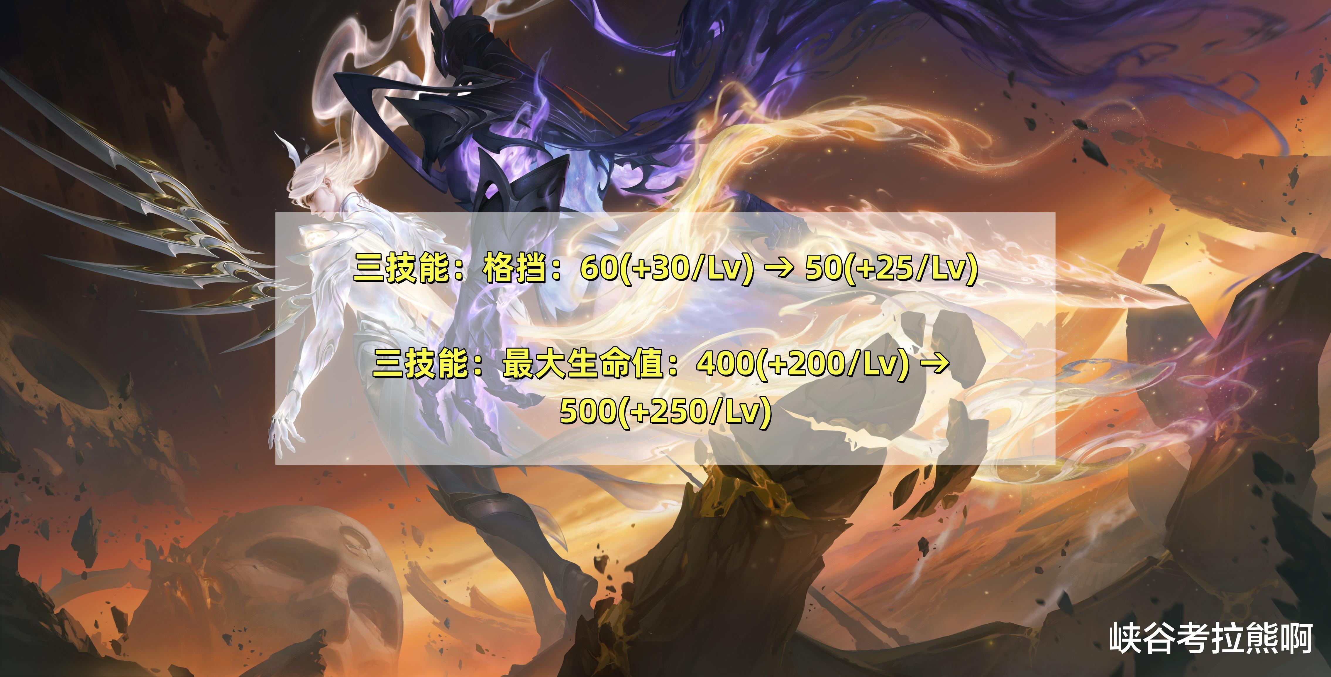 大招格挡数值降低10~20点,但提供的血量加成提高了100~200点。