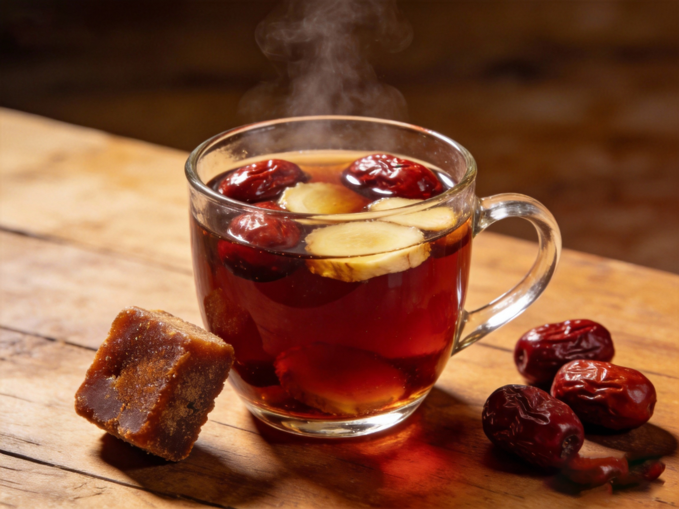 1️⃣ 晨起姜枣茶,唤醒一身阳气取生姜3片、红枣5枚(去核)、红糖适量,加水500毫升,煮10分钟后趁热饮用。生姜散寒暖中,红枣补脾养血,红糖温中活血。此茶尤其适合早晨起床后手脚冰凉、面色苍白、易腹泻者,有助于启动一天的气血循环。