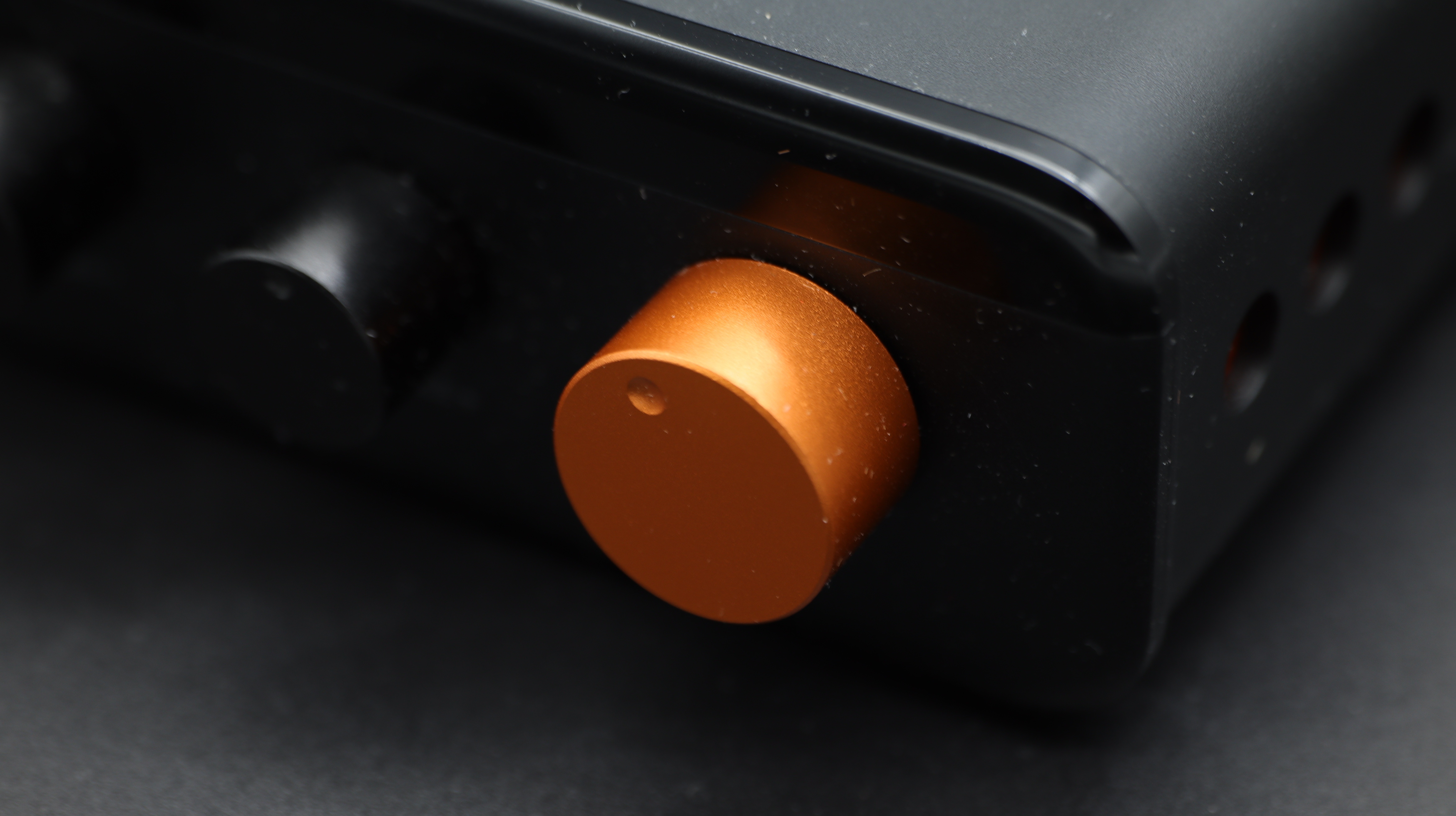 另外,机身正面的高低音独立调节旋钮也很实用,支持±10dB的调节范围,还带有中点定位标识。平时听不同风格的音乐时,可以根据自己的喜好微调:听人声时适当提升一点中频和低频,让声音更温润;听古典音乐时则把高低音调到中点,保持均衡的听感。调节过程中,声音的变化自然顺滑,不会出现突兀的断层感。
