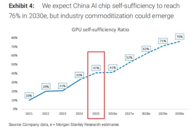 后来中国AI芯片不断的发展,到2025年的时候,达到了41%,较2021年有了质的提升。