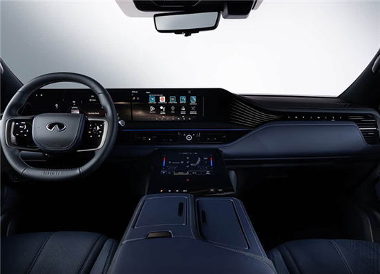 新车延续QX60 Sport设计语言,通过全车黑化套件塑造出凌厉的视觉冲击力。前格栅采用三维立体波纹中网,搭配专属运动前保险杠与小型前唇,22英寸熏黑多辐轮毂与贯穿式间断尾灯强化辨识度,后视镜、车顶行李架、车标等细节均以哑光黑处理,可选黑曜石车顶进一步凸显个性。