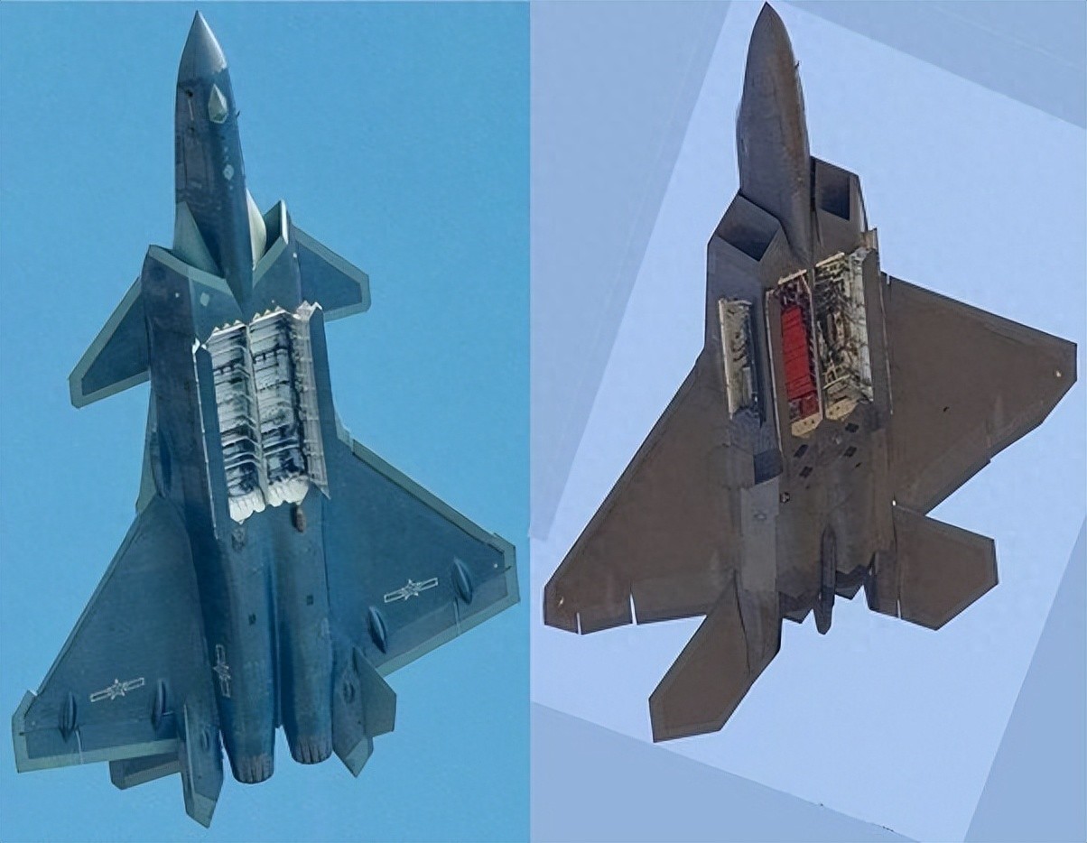 歼-20 的内部兵器舱则被认为设计得较大,能装载更远程导弹(如中国的 PL-15 类型)等武器,这使得它更适合执行远程压制、反隐身与区域防空的任务。