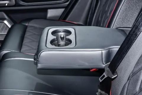 对于家庭用户来说,空间实用性是绕不开的核心。4795/2006/1880mm的长宽高,搭配2800mm轴距,方正车身把空间利用率拉到极致。后排腿部空间充裕,靠背角度还能调节,175cm的乘客坐进去膝盖离前排仍有两拳余量。储物细节藏着巧思:门板能轻松塞下多瓶矿泉水,中控台下方的下沉式储物格刚好放手机钥匙。后备箱更具“魔术属性”,586升标准容积满足日常购物,放倒后排后直接扩容至1653升,近2米的纯平空间,露营装备、大件行李都能轻松收纳。C-DM版本还在中央扶手处加了6.4升压缩机冰箱,夏天长途出行,冰镇饮料随时能喝到。