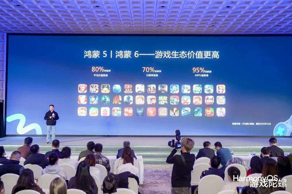 官方的另一项数据显示,80%的新游在鸿蒙获得了更高的平均次留,70%的新游获得了更高的付费率,还有95%的新游ARPU值更高。