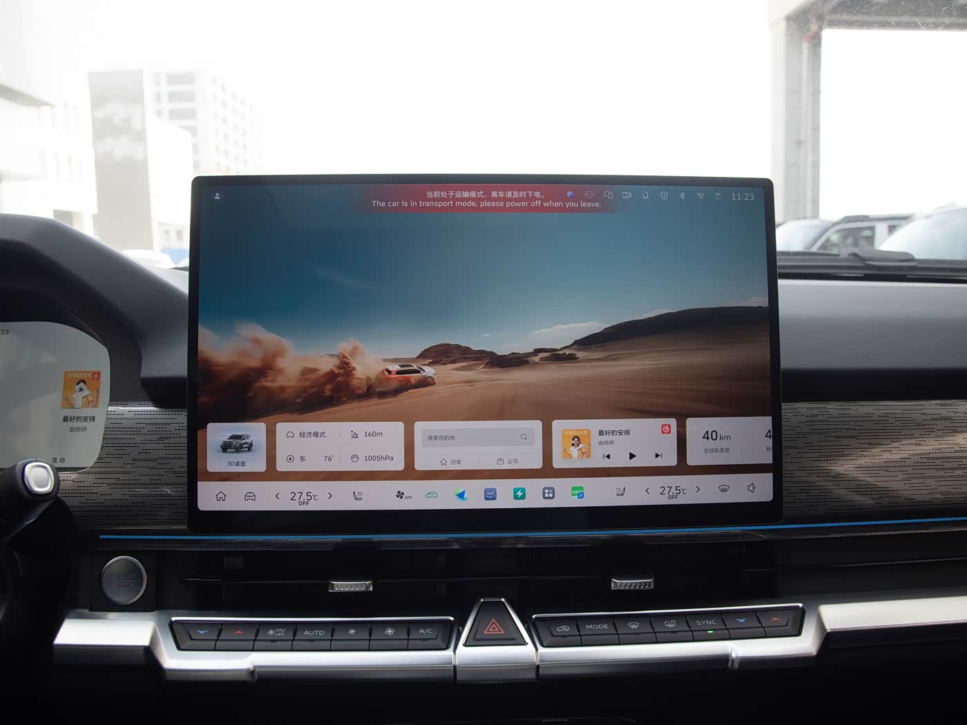 新款坦克400的内饰变化还是比较大的,换装大尺寸的悬浮屏,也换上了怀挡,扶手箱下面多了冰箱,中控岛台部分的按键也进行了全新设计,另外新车也取消了全景天窗,当然这只是为了吸顶折叠屏而设计的,内饰整体变得更简洁明快一些。