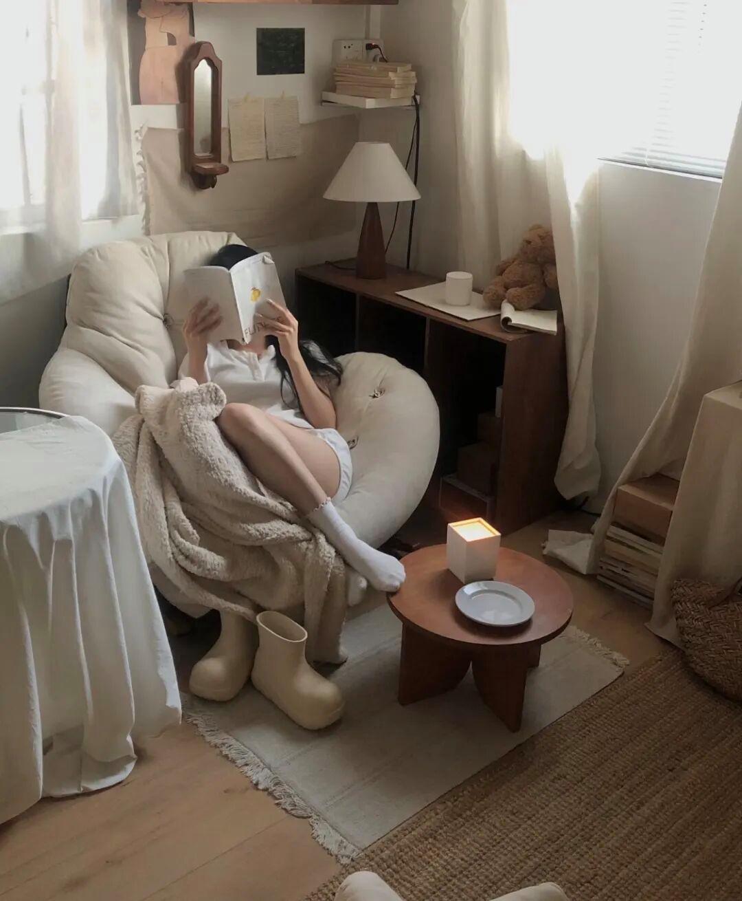 周末的时候,窝在家里的随意一个角落,看看书、刷刷剧,不被打扰,这种被包裹的感觉,真的太舒适了。