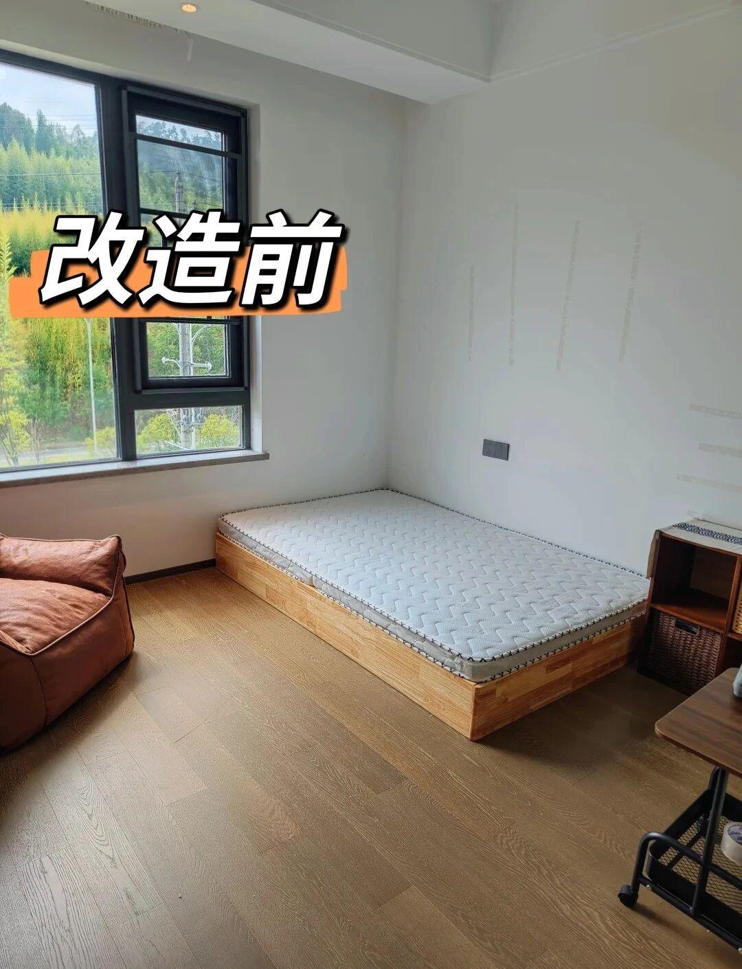 看着非常单调,好在墙壁足够干净,因此,做好装饰,适当留白,就可以让这个小屋焕然一新;