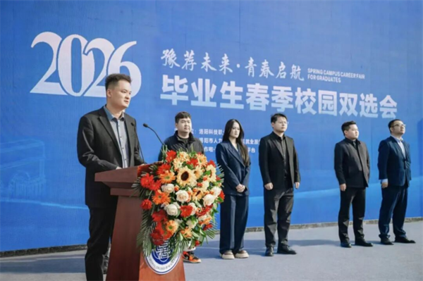 他指出,近年来学校就业工作取得突破性进展,2025届毕业生中每两人就有一人成功入职世界500强、大型央国企及上市公司。本次双选会汇聚了省内外200余家优质用人单位,提供就业岗位超20000个,是学校为毕业生搭建的高质量就业桥梁。他寄语2026届毕业生,要做“脚下有根”的洛科人,以技能立身;做“眼中有光”的追梦者,以理想领航;做“肩上有责”的实干家,以担当致远,将个人理想融入强国建设、民族复兴的伟大征程,用工匠精神打磨专业能力,为企业发展赋能、为“中国制造”添彩。