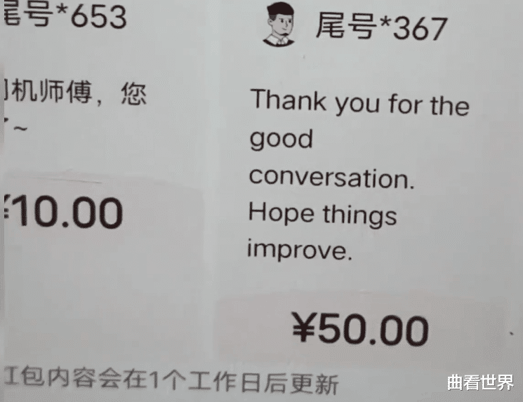 司机师傅听了外国乘客的话,并没有多说什么。他已经习惯了这样的抽成模式,虽然心里也有不满,但在生活的压力下只能默默接受。然而让司机师傅没有想到的是,当外国乘客们下车后,他们并没有就此离开。他们通过平台特意给司机师傅发了一个50元的红包,并且在备注里用温暖的语言安慰着司机师傅,大概意思是希望这点钱能让他感受到一些温暖,也希望他不要因为平台的抽成而太难过。