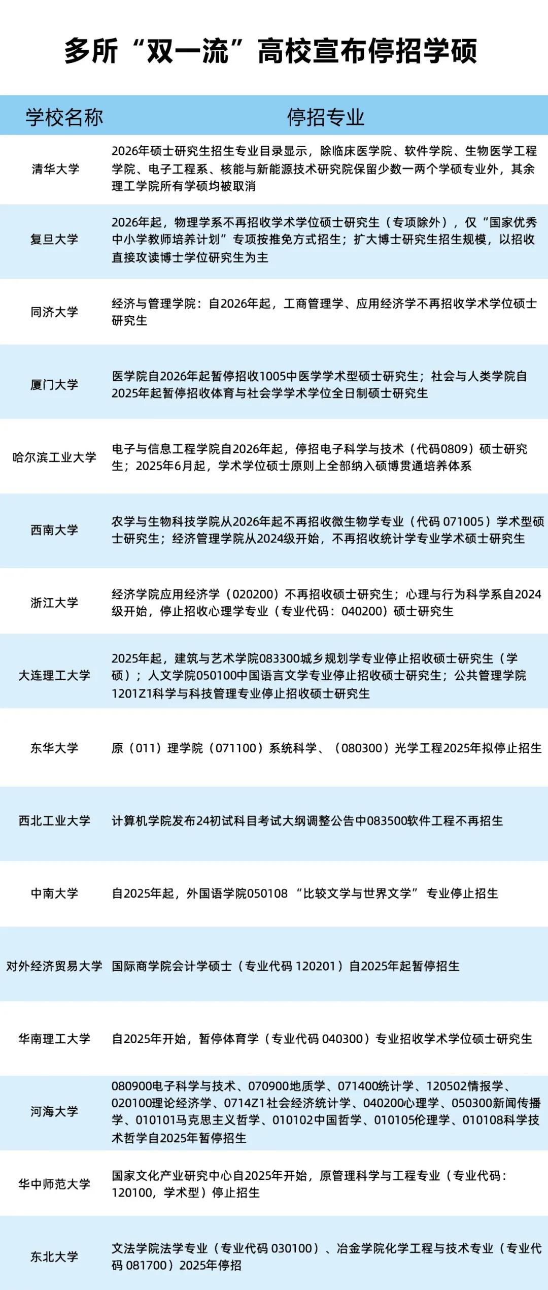 不只复旦大学,学术型硕士招生,在多所高校数个专业陆续按下停止键。