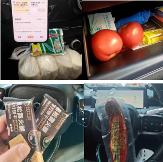 有人在饭馆购买,回车里慢慢吃