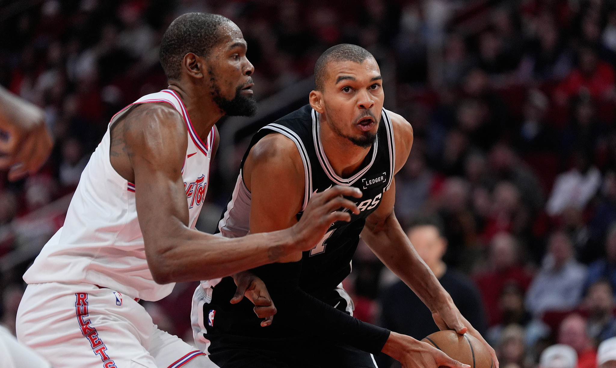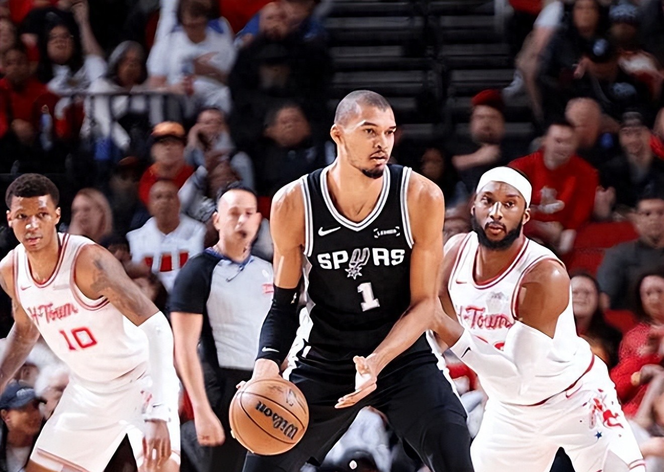 最后时刻,马刺凭借着哈珀的连续3次突破得分拉开了比分,进攻端迟迟打不进的火箭球员也像卸了气的皮球,最终在主场以99:111遭到马刺逆转,失去了向西部前三追进的机会。文班亚马仅出战29分钟便砍下28分16篮板2抢断5盖帽的统治级别水平。