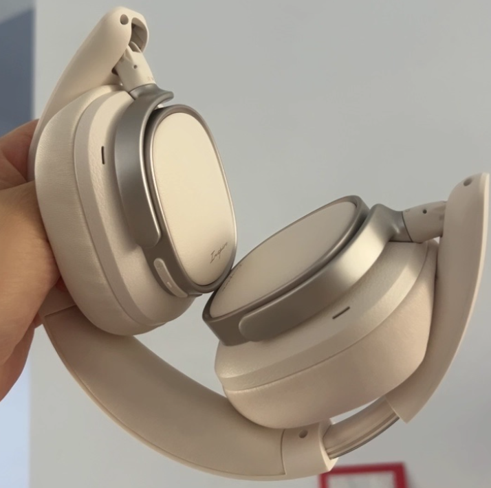 这款耳机轻量化做得还挺好的,整机才 246g,戴头上基本没什么重量感。耳罩是蛋白皮材质加透气海绵,触感亲肤柔软,不管是什么脸型,都能贴得很稳,头梁还能调节,头围大小,都能精准调到适合自己的长度。尝试集佩戴也不会酸胀,夏天戴也不怎么闷汗