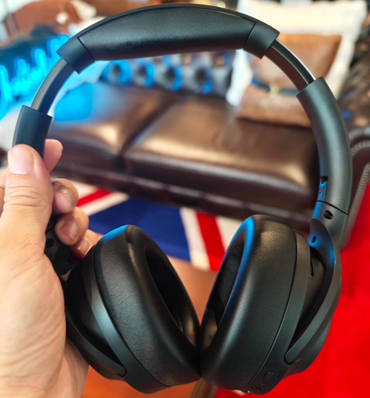 佩戴感也要夸夸,它的耳罩是人造皮革,里层是高密度棉,贴耳朵软乎乎的,不会闷汗,哪怕戴 2-3 小时办公、看剧,耳朵周围也不会有明显压痕,而且头梁是可调节的,不管是头围大小,都能调到合适的松紧度,戴久了不会觉得重