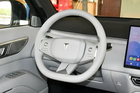 内饰方面:深蓝S09车内整体采用浅色搭配,中控台具有简约化设计风格,配备双15.6英寸悬浮式中控屏(2.5K分辨率、1000尼特亮度)和副驾屏,两块屏幕为连体布局,还配备显示效果达到43英寸的AR-HUD抬头显示系统。方向盘采用三辐式造型,设计有按键和滚轮组合的物理多功能控制方式,方向盘使用皮质拼接包裹。作为重点,深蓝S09配备可在第一排和第二排之间进行移动的中岛(带有700毫米滑轨),该中岛前部设计有手机无线充电面板,充电面板下方为隐藏式储物空间,并且该中岛前部和后部均配有杯架,中岛中部为车载冰箱。根据之前报道,该车载冰箱容积为10升,温控范围在零下6摄氏度至50摄氏度。该车第二排为双独立式座椅,每张座椅均带有独 立式扶手并支持座椅按摩/通风/加热,扶手内侧设计有座椅多功能控制按键,支持180毫米横向滑动调节。