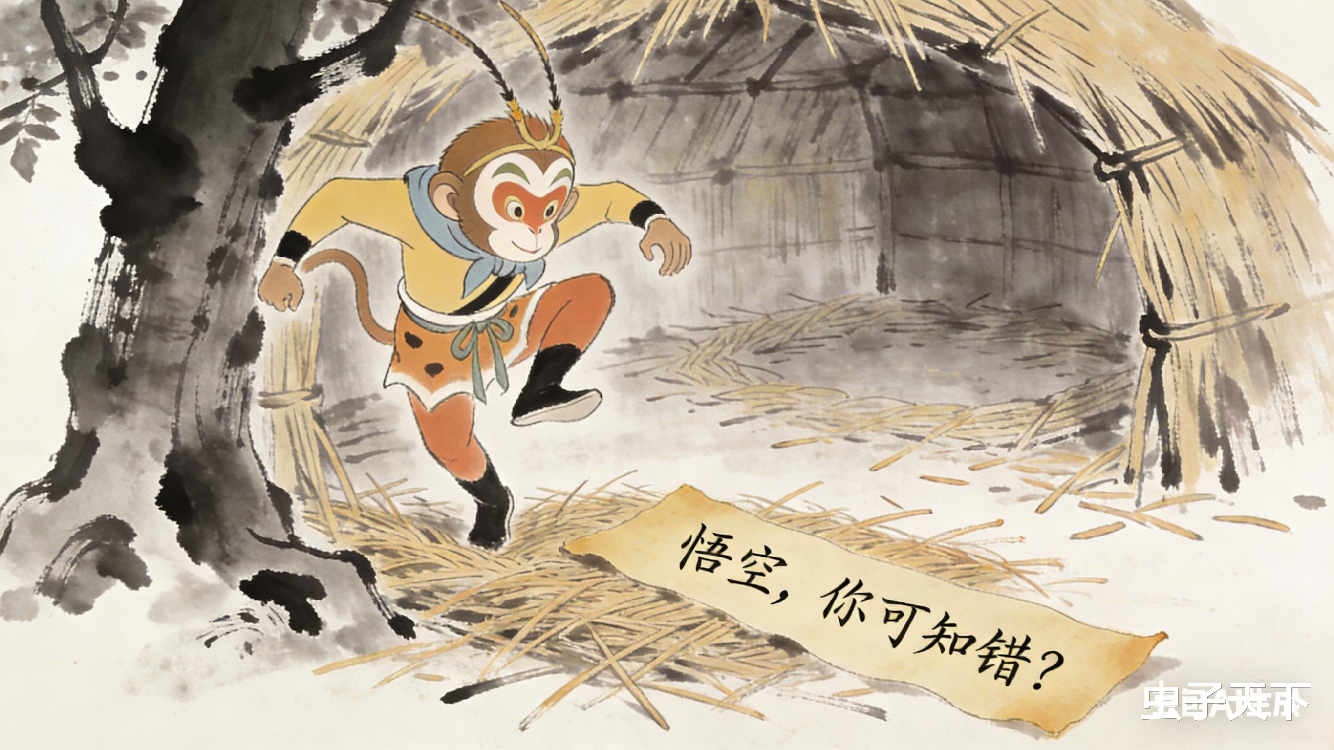 孙悟空一个筋斗翻到槐树上,那草窝棚里却空无一人,只有一张泛黄的纸条,上头写着八个字:"悟空,你可知错?"