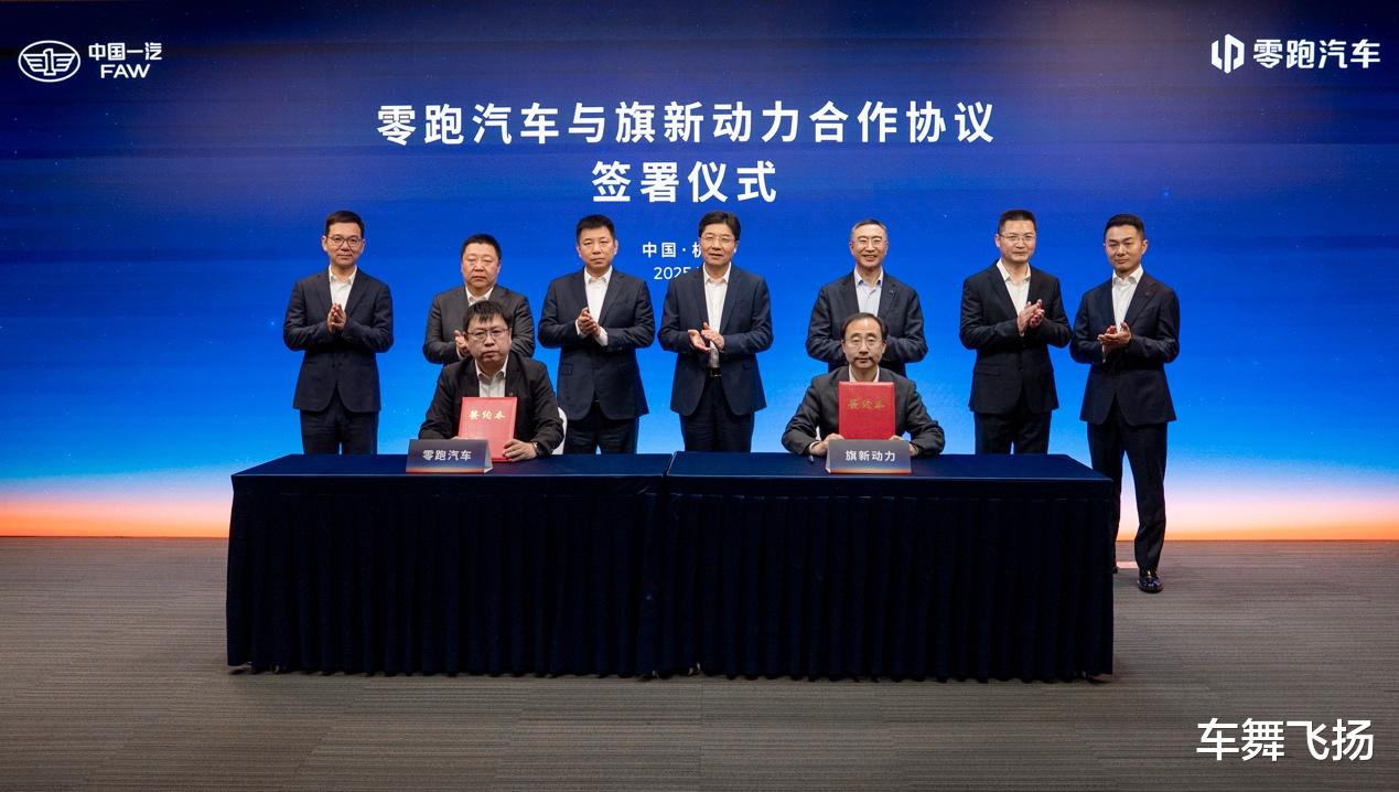 2025年12月28日,中国一汽与零跑汽车在杭州举行签约仪式,中国一汽全资子公司一汽股权投资(天津)有限公司(下称“一汽股权”)和一汽旗新动力(长春)科技有限公司(下称“旗新动力”)分别与零跑汽车签署投资协议和合作协议。杭州市委副书记、市长姚高员,中国一汽党委副书记、总经理刘亦功,零跑汽车创始人、董事长兼CEO朱江明出席仪式并共同见证签约。