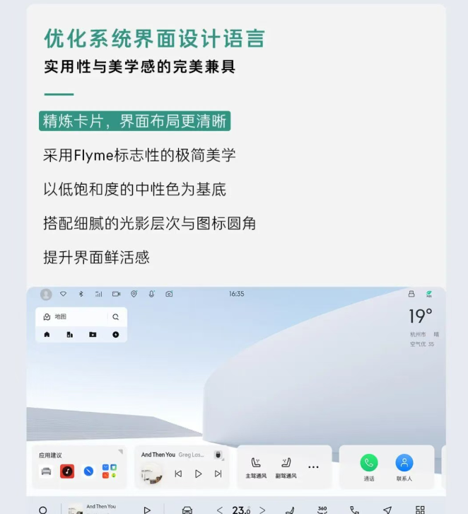 OSN 2.0的升级不仅停留在界面层面,更在于Flyme Auto设计语言的融合。通过引入地图卡片、大卡片布局和Smart Bar等核心元素,系统在使用逻辑上实现了更高一致性。HMI界面采用Flyme Auto视觉语言后,操作更加直观,对老用户友好,也降低了新用户的上手成本。