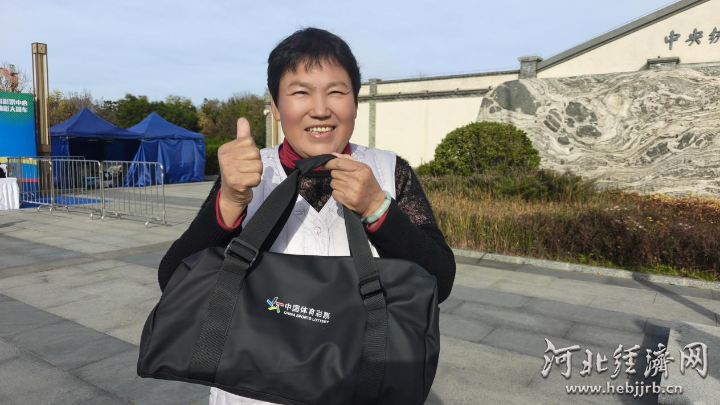 拿到体彩运动礼包开心不已。郝艳红 摄