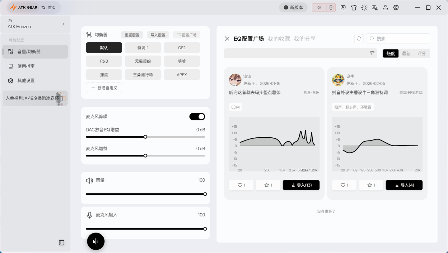 它还有持续更新的专业游戏调音库,以及玩家共创的调音社区,能直接套用大神分享的 EQ 方案,哪怕是调音小白,也能轻松找到最适合自己的听感。