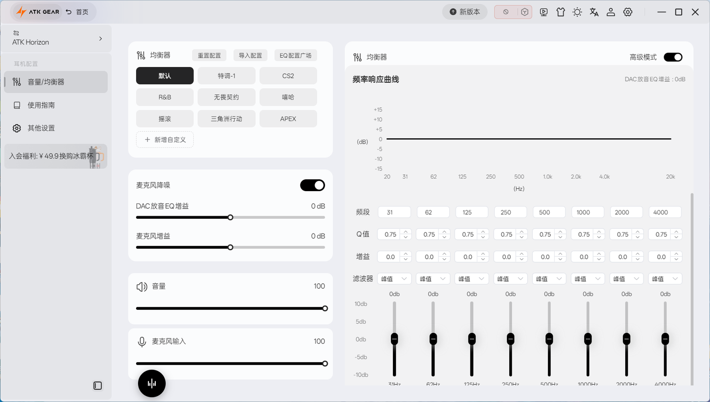 搭配 ATK 自研的双端驱动,不管是下载 ATK HUB 客户端,还是用免安装的网页端,都能实现可视化的 DSP 精调。用户可以用简易模式直接套用预设,也能切换高级模式,自由调节频段、Q 值和增益,打造专属音效。