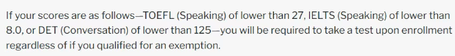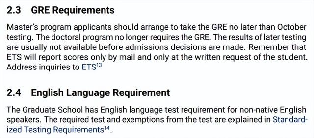 语言成绩:建议托福分数为110左右,如果口语小分低于27分/雅思低于8.0.则需要在入学之前另行参加测试;