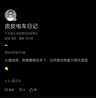 “因为吉利正在做战略整合,这一点从极氪与领克的合并就能看出。而对于销量一般的极越,其可能成为被整合的对象。”北方工业大学汽车产业创新研究中心主任纪雪洪在接受媒体采访时曾表示,随着市场集中度的增高,品牌、车企间的整合在所难免。