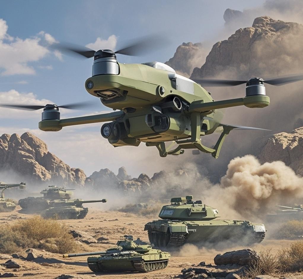 无人机可以从坦克头顶对其进行打击,而坦克顶部的装甲很难加强,所以坦克继续搞“甲弹对抗”也只能提升坦克正面和侧面装甲强度,很难应对来自无人机的威胁。