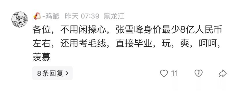 但是有的网友竟然说父亲为她留下了8亿人民币,还用上什么学,直接毕业,玩、爽……还表示非常羡慕。