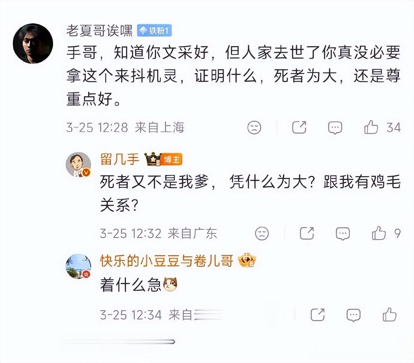 不知道留几手和张雪峰之间以前是不是有什么恩怨,但是不管有没有恩怨,现在张雪峰已经逝世了,留几手再说这样的话就太缺德了,太没有人性了。