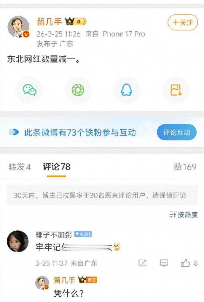 张雪峰去世第二天,网红“留几手”发表了一条微博:“东北网红数量减一。”