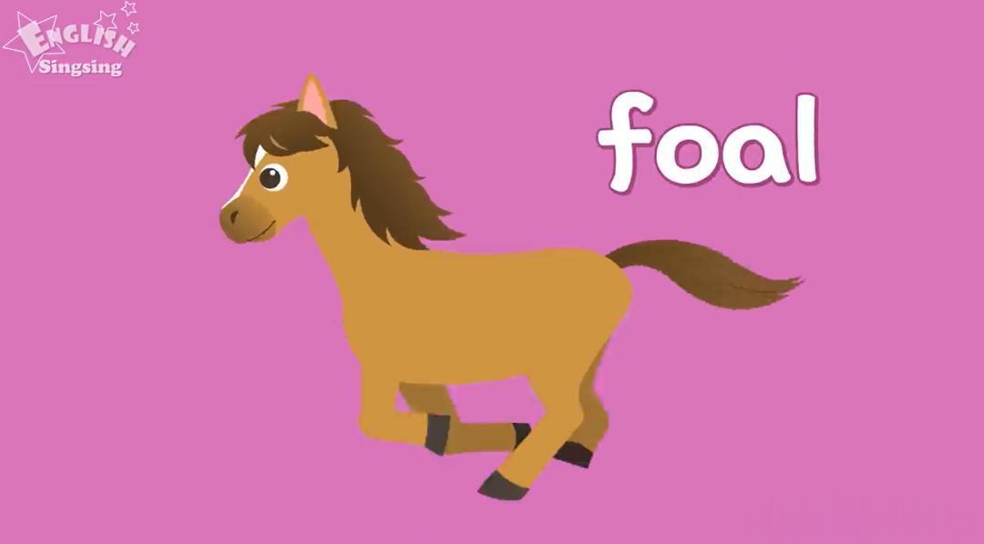 bear 熊 cub 小熊、cat 猫 kitten 小猫、chicken 鸡 chick 小鸡、cow 牛 calf 小牛、deer 鹿 fawn 小鹿、 dog 狗 puppy 小狗、duck 鸭 duckling 小鸭、frog 蛙 tadpole 蝌蚪、horse 马 foal 小马、kangaroo 袋鼠 joey 小袋鼠、pig 猪 piglet 小猪、rabbit 兔 bunny 小兔、sheep 羊 lamb 小羊。