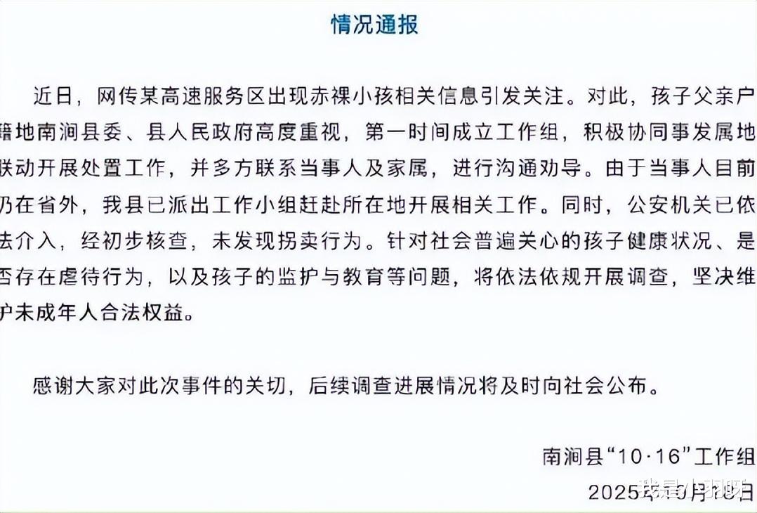 2025 年 10 月 15 号,有网友在雅西高速四川石棉服务区,拍到一家人带着个 “野人小孩” 出门。